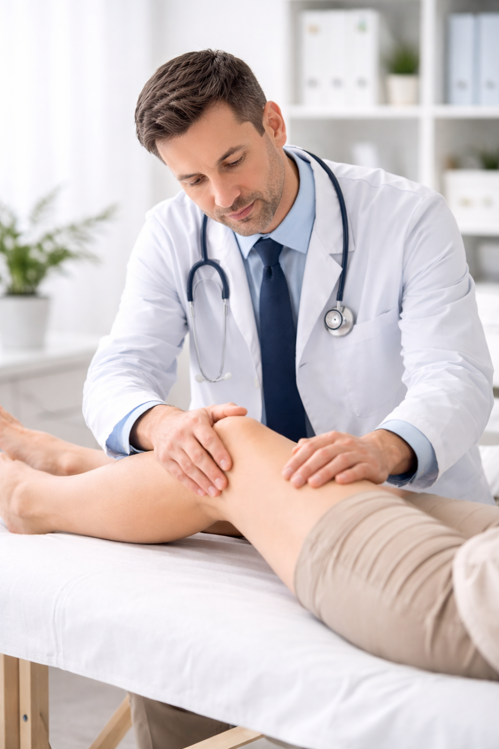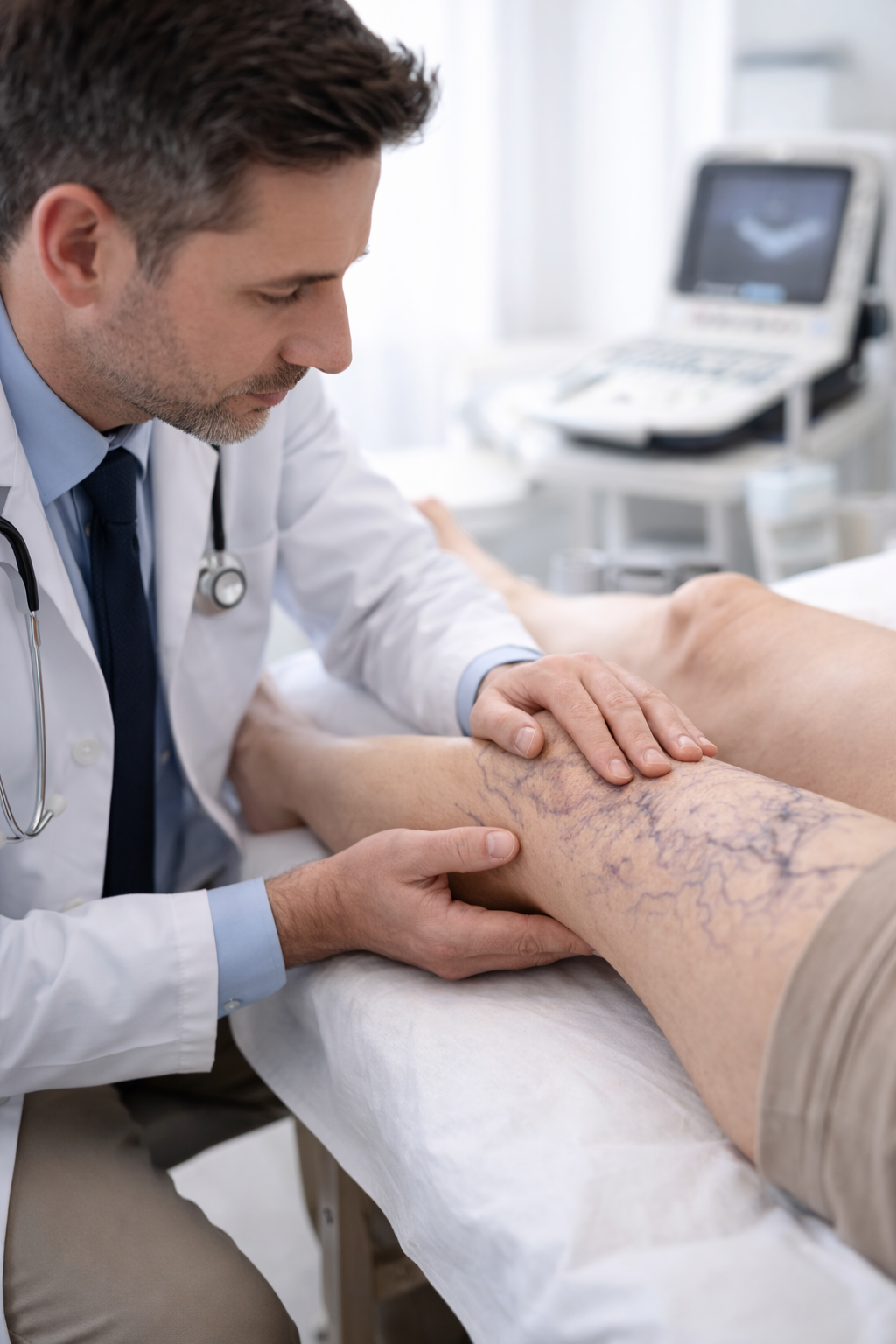 A primeira consulta costuma ser mais explicativa do que intervencionista. O médico avalia os sintomas, examina as pernas, analisa fatores de risco e decide se há necessidade de exames como o Ultrassom Doppler vascular.